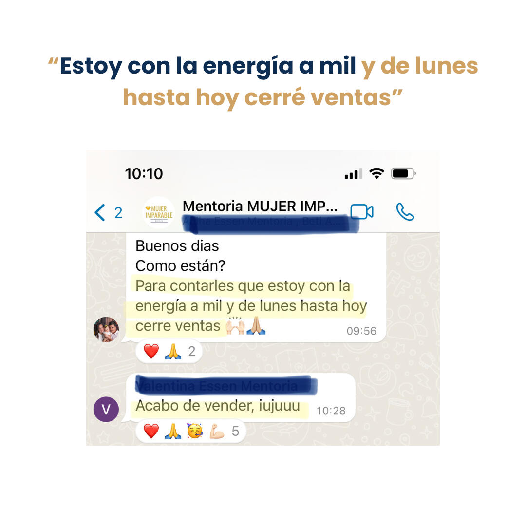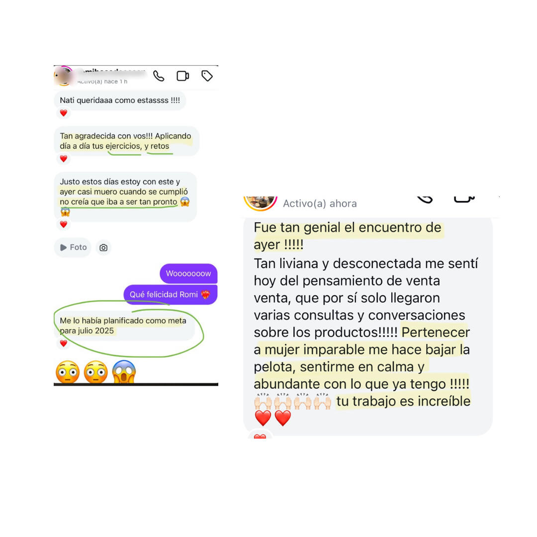 🔥 Más de 400 MUJERES con o sin negocio, han estado dentro de este espacio. Con resultados extraordinarios en su manera de vincularse con el dinero y las ventas, desde la fluidez y certeza, soltando el control y recibiendo 6 cifras mensuales de manera sostenida.Transformar tu forma de vincularte con el dinero y las ventas, es el primer paso para ampliar tu capacidad de recibimiento sin un esfuerzo constante. Se trata de que tus condicionamientos, sistema nervioso y campo energético estén alineados para recibir más. De lo contrario, lo sabotearas, volviendo siempre al mismo punto de ingresos.👑 Bienvenida al movimiento de mujeres abundantes, libres & poderosas.🔥 Conectar con tu Identidad Imparable es conectar con tu poder de creación 🔥