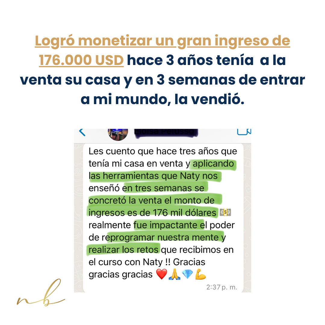 🔥 Cómo eliminar los condicionamientos subconscientes que hoy te mantienen en el mismo punto de ingresos y ventas. (De manera subconsciente le ponemos condiciones al como y cuando recibimos dinero, y eso es lo que te mantiene en el mismo punto de dinero que estas hoy).🔥 Como comenzar a vincularte de manera diferente con el dinero para que puedas no solo recibir más, sino sostenerlo con seguridad y certeza, sin entrar en patrones limitantes.🔥 Como acceder a un estado de conciencia donde recibir más tiene que ver con seguir tu propio ritmo, verdad y poder interno, para que dejes de forzarte a hacer más todo el tiempo y empieces a crear desde tu esencia.🔥 Cómo activar los códigos que me permitieron desbloquear la desvalorización del dinero y la insuficiencia, para que puedas soltar de una vez los autosabotajes y abrirte a recibir más sin presión ni lucha interna.🔥 Cómo encarnar a la Mujer Imparable a diario, en todos los niveles para que actuar desde la certeza, abundancia y fluidez se convierta en tu normalidad, sin esfuerzo ni desgaste.🔥 Cómo activar tu energía femenina de placer, goce y disfrute en el día a día, para que tu vibración se convierta en un imán constante de más dinero, paz y expansión.🔥 Como elevar tu mínimo y máximo energético de dinero, para que puedas aumentar tu capacidad de recibir sin entrar en ciclos de autosabotaje financieros.🔥 Como vender desde la certeza y dejar de estar parada en la escasez o necesidad de venta Vas a aprender a vender desde tu estado natural de abundancia y a saber los pilares fundamentales para activarla para que vender sea algo natural y no algo tan forzado.🔥 Aprenderás estrategias de venta efectiva, desde contenido que vende, como y que decir al responder mensajes, hasta como vender por historias de Instagram (te voy a dar mi estrategia, paso a paso).